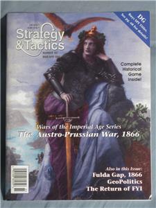 The bonus includes Official Errata and Q&A from S&T # 171, some brief unofficial variants, a list of the rules changes from the Franco-Pussian rules (from S&T #149), a game replay, and Variant Cards (printable from emailed links) to replace the random event counters for 3 of the 4 games of the Ancient War Series. Some to all of the bonus will be sent by email upon shipping your purchase. Austro-Prussian War is a two-player simulation and the first in the well-regarded Wars of the Imperial Age series which includes the Franco-Prussian War (#149), Russo-Turkish War (#154), and Risorgimento, Italy 1848 (#187). The game system while simple uses innovative features to represent leadership, staff work, command/control, effects of different weapons, and the ever-shifting sands of morale and politics. Included are four scenarios with the campaign game being the last one. Game Designer: Joseph Miranda. Published March\April 1994 by Decision Games.