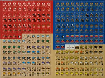 The cover (high grade excellent condition with slight flaws which little affect the art's appearance), magazine with rules attached (new condition except for a pronounced spine roll which has curved the pages of the last half of the issue near the spine, but with very glossy pages and no marks or highlighting), 280 double-sided counters (unpunched and in new condition), and 22"x34" full color map (new condition except for creasing where the middle folds intersect, see enlargeable pictures) are in high grade excellent to new condition except perhaps for the spine roll.