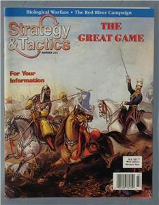 The bonus includes official errata, designer's notes, rules variants by the designer (not part of the original game), game reviews, and the official rules with after-publication errata and clarifications. Some to all of the bonus will be sent by email upon shipping your purchase. All bonus and extras material are available for sale separately if requested. Asian Crossroads is a two-player simulation of the 19th century conflicts in Central Asia between the expanding empires of Britain and Russia. Players attempt to use a combination of military and economic resources to gain control of Central Asia. A Joseph Miranda design with a number of nice touches. Elephants for the money are a powerful combat unit, but too slow by themselves to keep enemy infantry from retreating. Irregulars can sneak through the frontlines to attack garrisons in the rear, but often too weak to destroy the trading posts being guarded. The more important neutral areas are also the hardest to turn into allies. Game designed by Joseph Miranda, veteran S&T editor and designer. Published May\June 2003 by Decision Games.